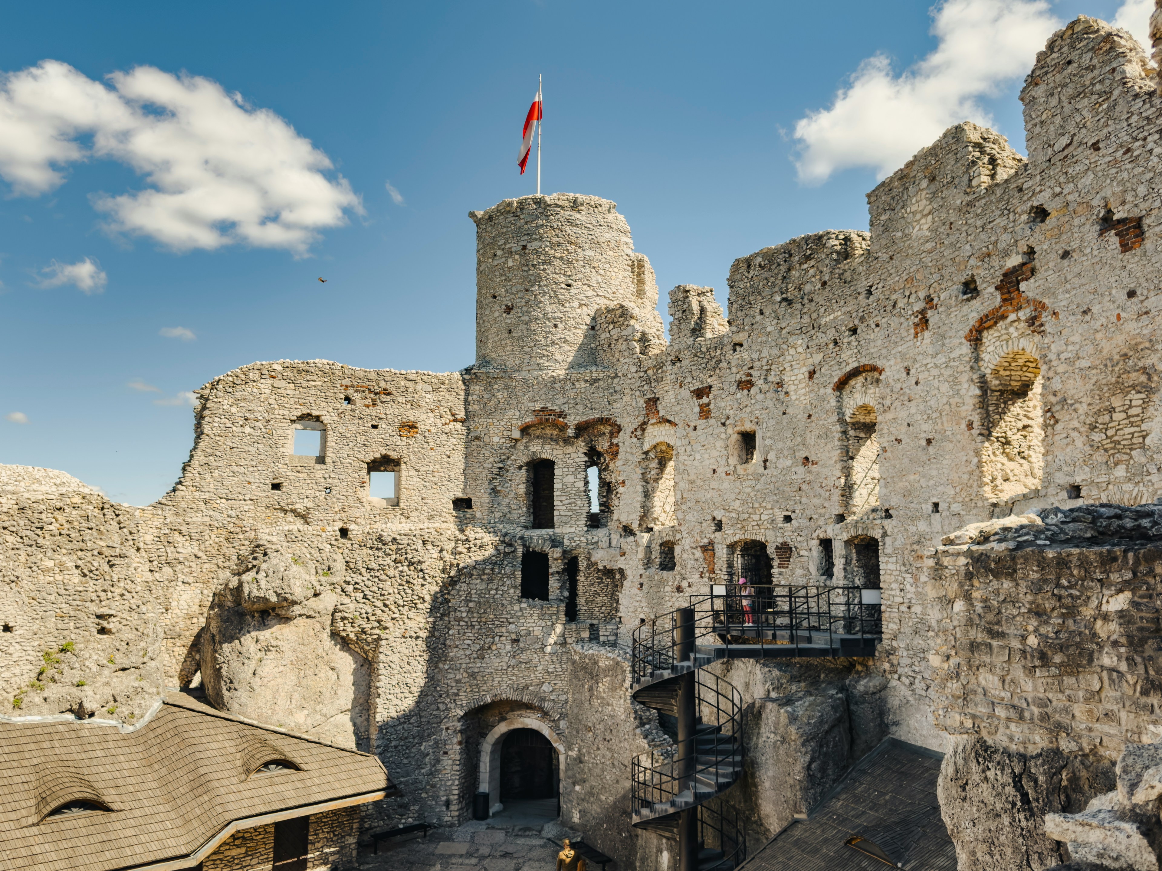 The Upland boasts some of the most beautiful landscapes in Poland. Limestone outcrops, karst valleys, and impressive monadnocks such as Maczuga Herkulesa and Okiennik Wielki. Beneath the surface lie cave tunnels, from the famous Łokietek Cave and Ciemna Cave in Ojców to the bat-inhabited Nietoperzowa Cave. Fossilized shells, ammonites, and prehistoric remains are also found here, making the Upland a paradise for nature lovers and explorers alike. Scattered throughout the hills are the medieval castles of the Trail of the Eagles' Nests, built in the 14th century to defend the borders of the Kingdom of Poland. Today, their atmospheric ruins and restored strongholds invite tourists on a journey back in time. Among the most famous castles are Ogrodzieniec Castle, the castles in Bobolice and Mirów, Ojców Castle, and Pieskowa Skała Castle. These fortresses, proudly perched on rocky hills, remain symbols of the region's rich history.